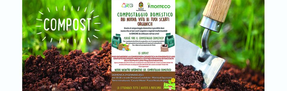 Domenica 29 Gennaio 2023 alle ore 10:30 al 1°piano della Torre ristrutturata “Casa te l’Abate” in Piazza Nicola Arigliano, sede Pro Loco Squinzano- Marina di Casalabate, si svolgerà un incontro formativo/informativo sul Compostaggio domestico al fine di assistere l'utenza già in possesso della compostiera domestica in tutto il processo di trasformazione degli scarti organici in compost maturo e fornire indicazioni utili ai cittadini interessati al tema.