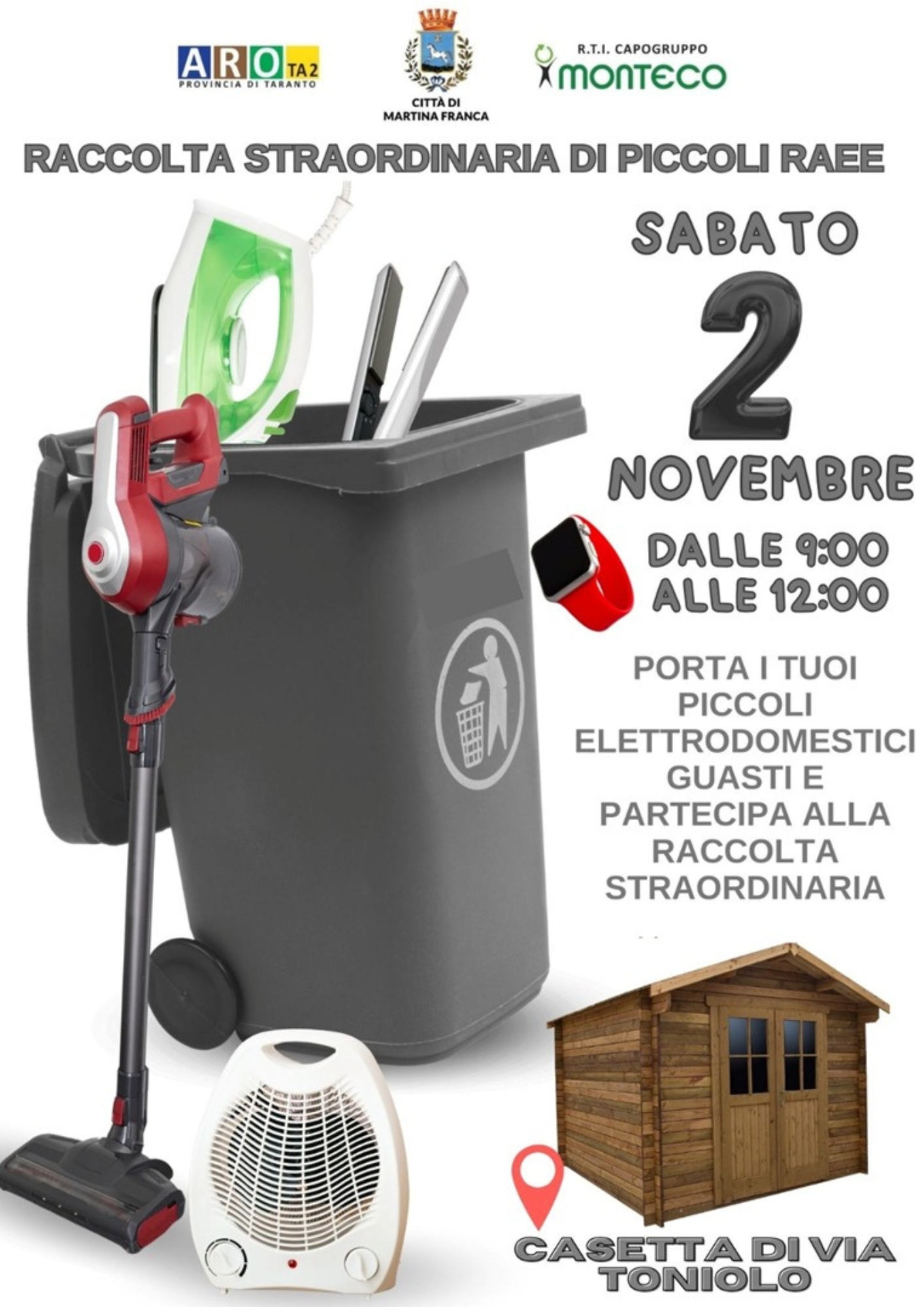 SABATO 2 NOVEMBRE 2024 RACCOLTA STRAORDINARIA PICCOLI RAEE