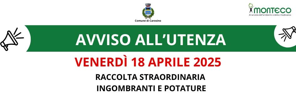 VENERDÌ 18 APRILE 2025 RACCOLTA STRAORDINARIA INGOMBRANTI E POTATURE