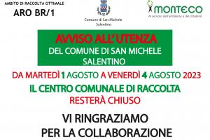 AVVISO ALL'UTENZA: PROROGA CHIUSURA TEMPORANEA CENTRO COMUNALE DI RACCOLTA